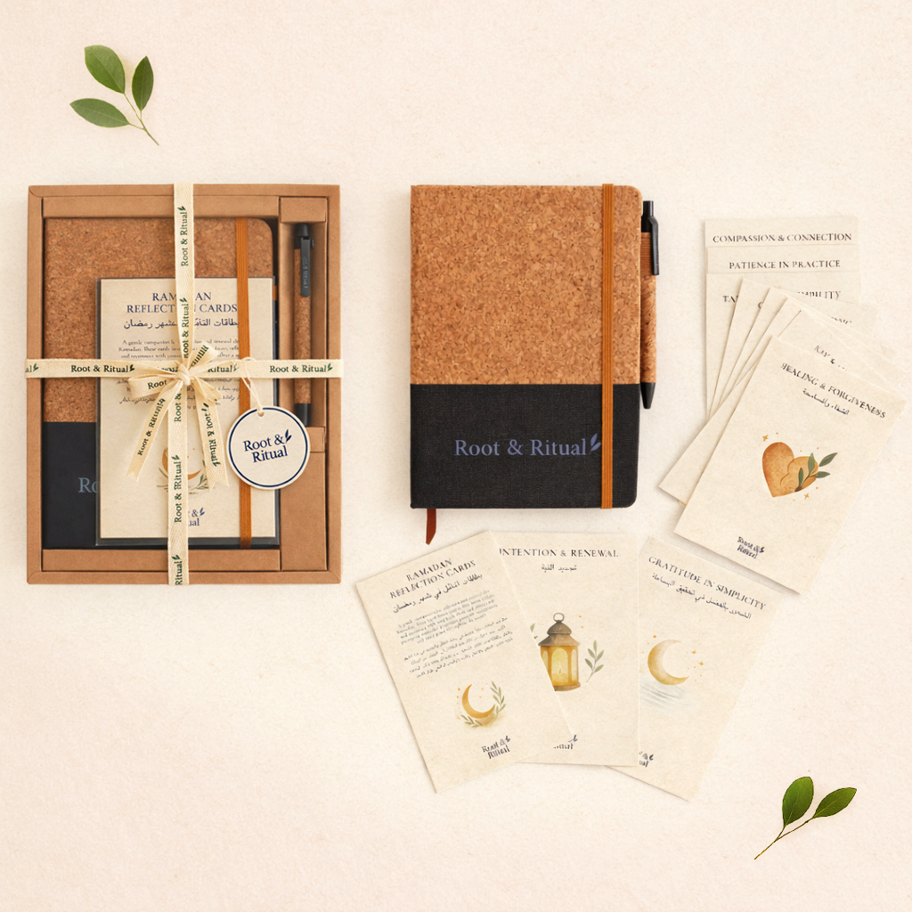 Created especially for Ramadan, this reflection journal kit is an invitation to slow down, turn inward, and reconnect with what truly matters during the holy month.