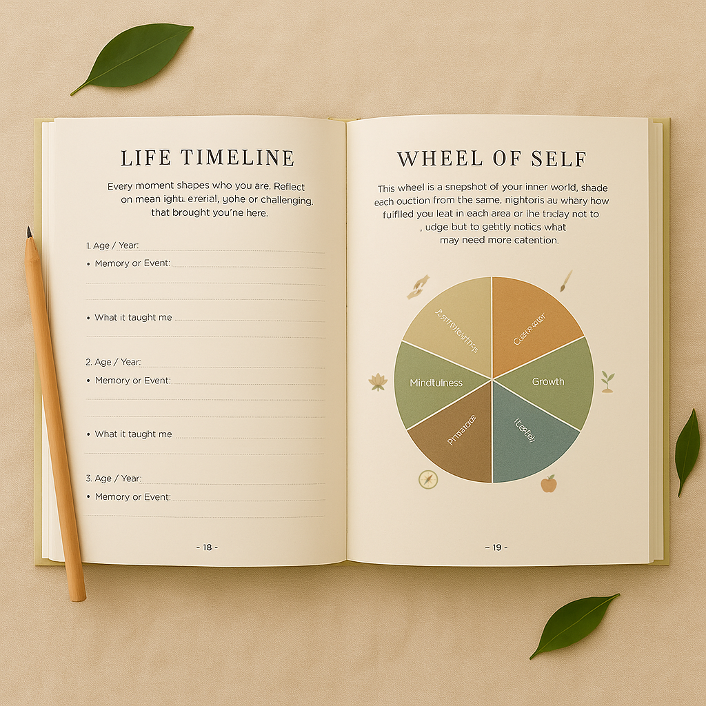 Whether you’re just beginning or continuing your growth journey, these pages offer space to explore who you are — with clarity, curiosity, and care.